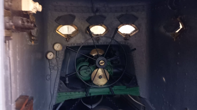The austere bridge of Drazki, looking forward. It reatins the original controls and navigational instruments.
