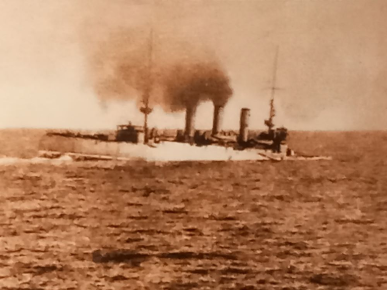 Awarded a citation for his actions during the First Balkan War, this image shows Captain Orbay and his cruiser Hamidiye. Courtesy Karamitsos